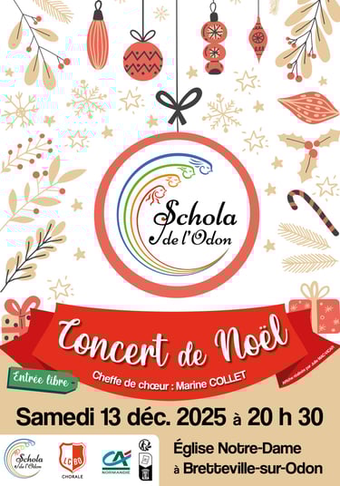 Placée sous la direction de sa cheffe de chœur Marine Collet, la Schola de l'Odon vous propose son traditionnel concert de Noël. Un moment musical unique pour entrer ensemble dans la magie des fêtes de fin d’année.